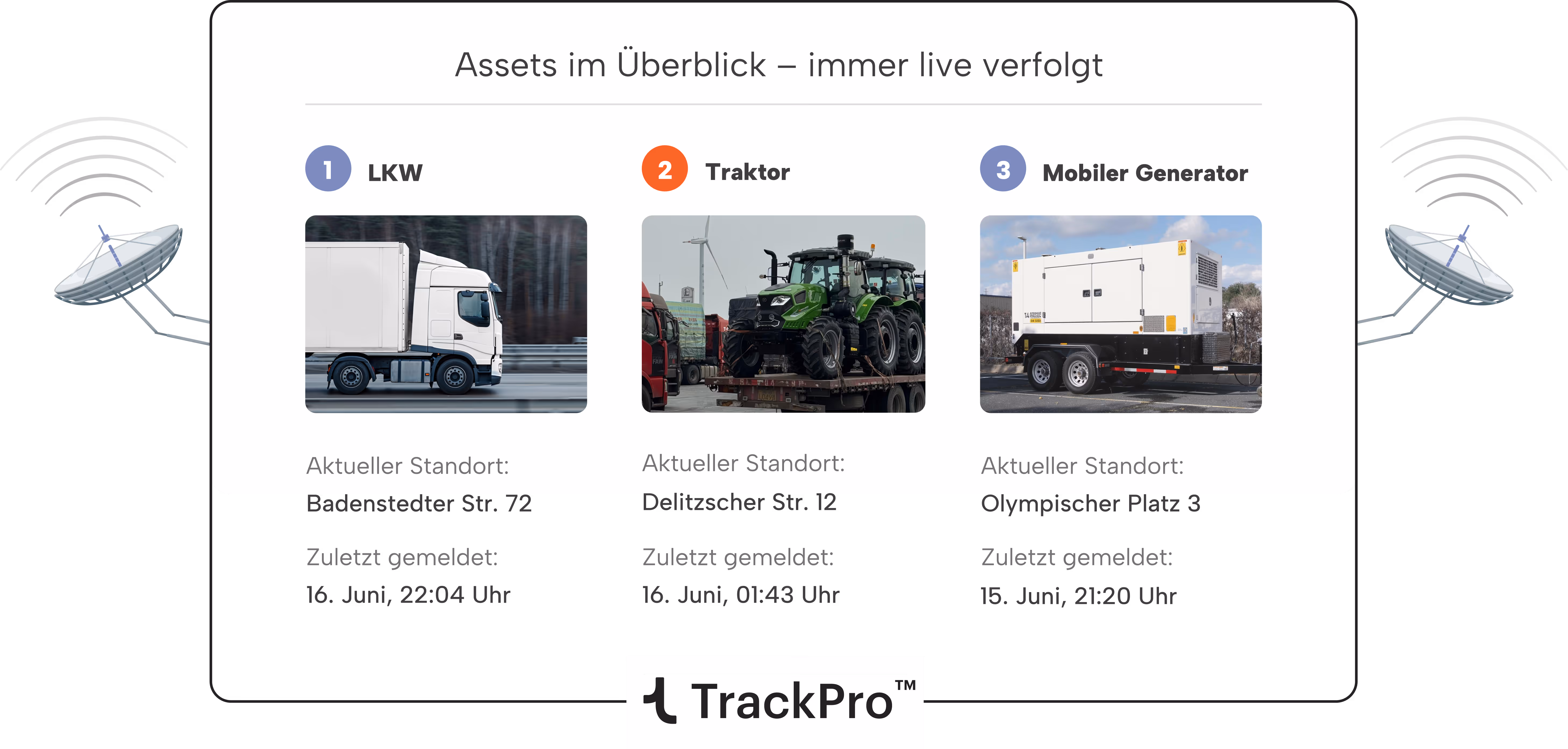 Mit TrackPro GPS Trackern ermöglichen wir Unternehmen jeder Größe, ihre Fahrzeuge, Maschinen, Container und Werkzeuge in Echtzeit zu orten.