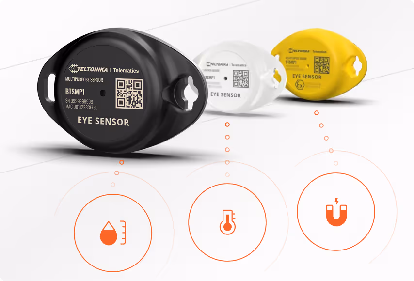 Der EYE Sensor Standard ist ein kabelloser Bluetooth Low Energy (BLE) Sensor, der ideal zur Überwachung von Temperatur, Bewegung, Neigung und Tür-/Klappen-Events eingesetzt wird. Kompatibel mit Trackern wie FMC003, FMC650 und Remora3.