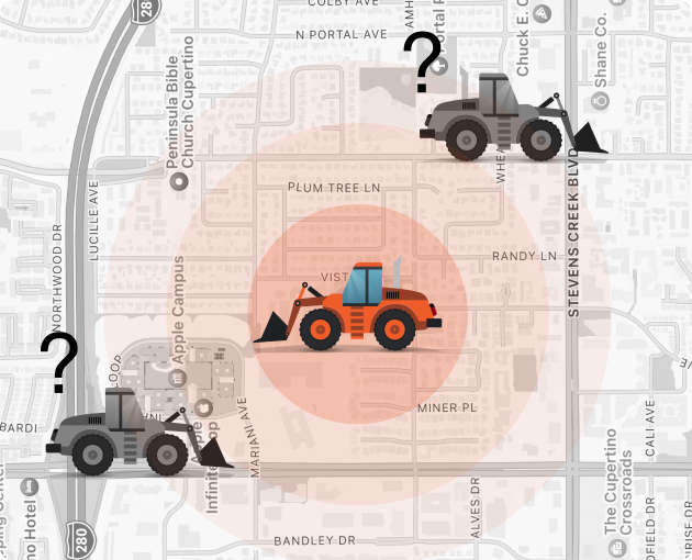 TrackPro zeigt Ihnen auf Wunsch den schnellsten Weg zur gesuchten Maschine – über integrierte Navigation per Google oder Apple Maps. Ideal für große Baustellen, Außenlager oder unübersichtliches Gelände.